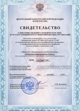 Мы работаем официально под надзором ЦБ – занесены в Госреестр микрофинансовых